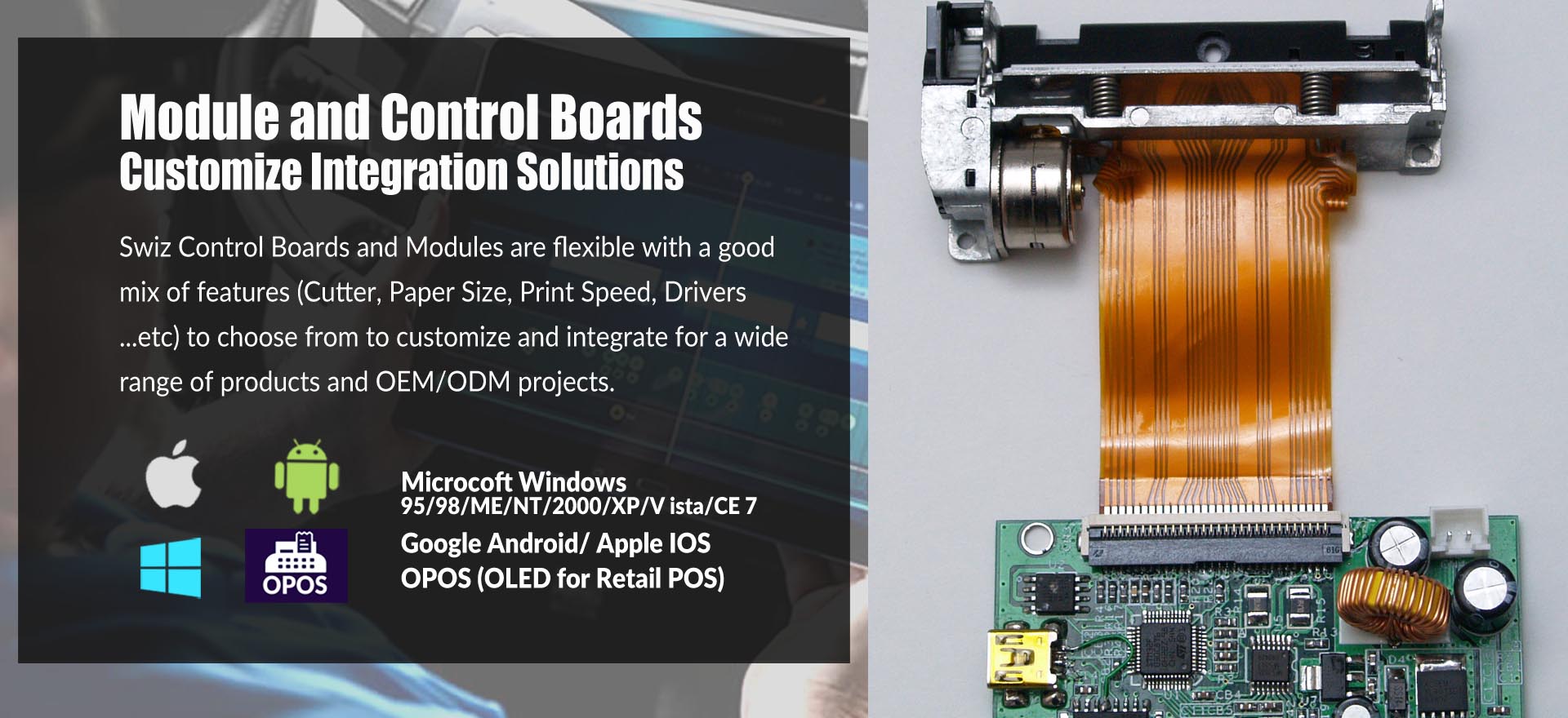 Since 1998, SWIZ Technology had been an active player in the Industrial Computing Market with the primary focus on providing fast, reliable and versatile Thermal Print Solutions for various industrial and applications, ranging from various food and beverage, restaurants, supermarket, health care and other logistic industrial to production control, Kiosk, POS system and portable mobile device. Our spontaneous and responsive service cater for all kind of special projects (Plug and Play modules , OEM and ODM). Our business goal is simple --- Help Your Business Grow faster, easier and more efficiently!